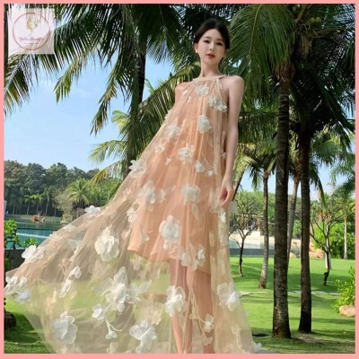 HB6408 Women's Mesh shoulder sleeveless vest dress for women in summer white skirt waist hip long skirt