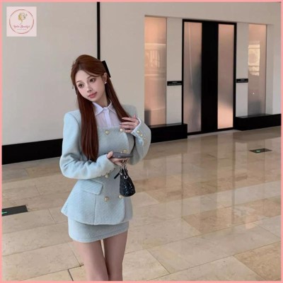 HB4964 Women's style textured quilted woolen coat, temperament,woolen skirt suit