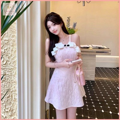 HB6306 Women's Pink bow suspender halter vest for summer with lace stitching, and top